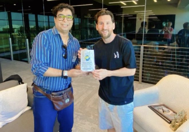 12月13日,梅西正式开始为期三天的印度之旅。然而,他在印度的第一天并不愉快。由于主办方的疏忽,赛事现场发生了大骚乱,八万人在体育场内肆虐。随后,印度印度行负责人被捕!梅西印度之行的第一站是加尔各答。第一天早上,梅西为一座为纪念他而竖立的临时雕像揭幕。后来,他来到了一个有八万人的体育场。在球场内,梅西原本计划绕球场走动,与球迷互动。然而,他却被大批官员包围。梅西无法在场边与球迷打成一片,只能留在球场内。整个过程中,梅西被数十名官员及其家人包围,球迷看不到梅西。最终,球迷愤怒地将水瓶和椅子扔进体育场。出于安全考虑,梅西停留了10分钟才离开。作为梅西一走,8万球迷彻底愤怒了。不少人从看台冲出,砸毁球场设施,引发广泛骚乱。印度政府是认真的。警方立即介入,立即逮捕了印度之旅团长、当地大亨萨塔德鲁·杜塔(Satadru Dutta)。萨塔德鲁·杜塔昨天下午和梅西待在一起。当球场发生混乱时,他就戴着墨镜出现在球场内。然而,萨塔德鲁·杜塔无法阻止球迷的骚乱。当梅西离开时,他也离开了他。随后,萨塔德鲁·杜塔陪同梅西前往机场,准备乘坐专机前往梅西印度之行的下一站。当萨塔德鲁·杜塔和梅西抵达机场时,警察也在场。当着梅西的面,警察逮捕了萨塔德鲁·杜塔。印度媒体称,萨塔德鲁-杜塔将面临至少5项指控,包括故意煽动骚乱、故意损坏财产造成损害、涉及人身伤害、破坏供水层系统、火灾或爆炸物!萨塔德鲁·杜塔多次高调表示梅西的印度之行是他策划的。现在,这个策划,已经将他推入了火海之中。据报道,萨塔德鲁·杜塔正在接受多次审讯,包括他如何计划这次活动、如何安排体育场的安保,以及如何确保球迷和梅西之间的联系。